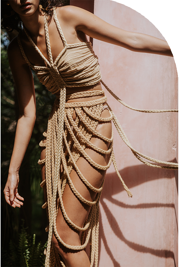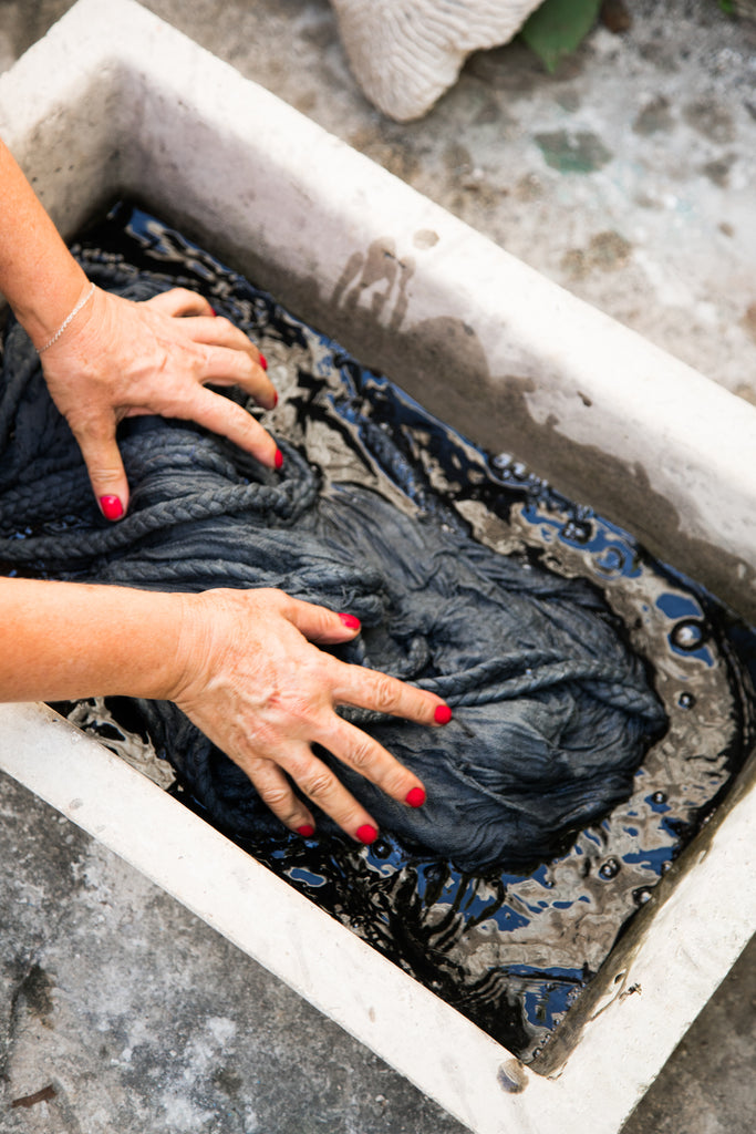 Every piece of our collections is a true example of mindful slow fashion - artfully hand-cut, sewn, braided, and then individually dyed by spirited local artisans, transforming meters of airy cotton into intricately constructed garments.